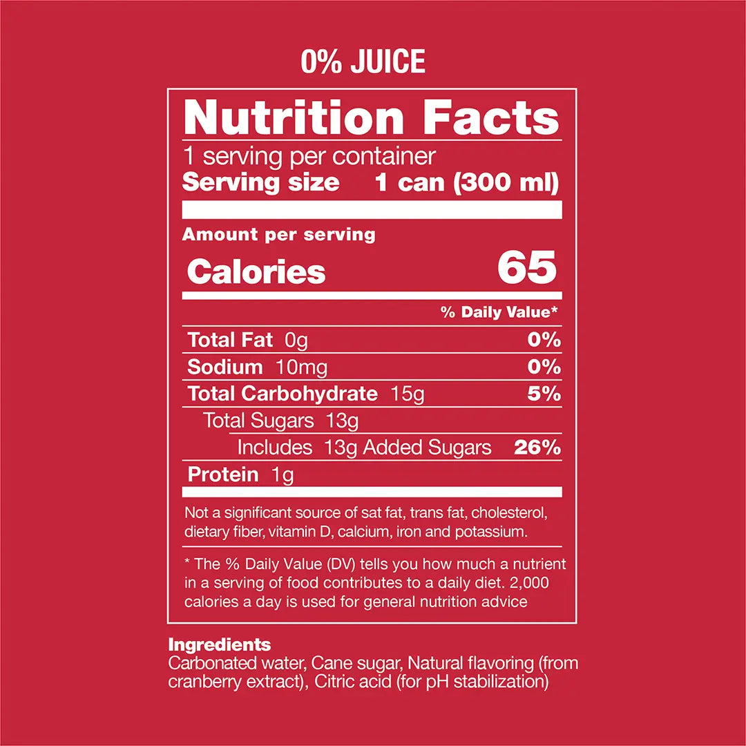 Not too sweet, not too tart, just the right cranberry kick. This ruby-hued refresher brings classic soda fizz with a grown-up twist. Real cane sugar, but less of it, keeps it clean, cool and wildly crushable. Your ice-cold answer to a hot day.