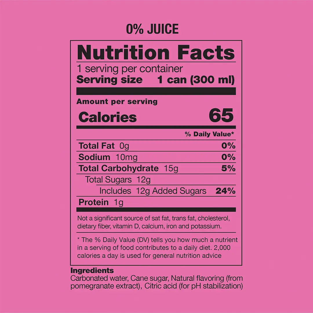 Dark, juicy and just the right amount of mischief. Pomegranate soda brings bold flavor without the sugar overload, thanks to pure cane sugar just enough to let the fruit shine. A throwback soda with a taste that’s totally now.
